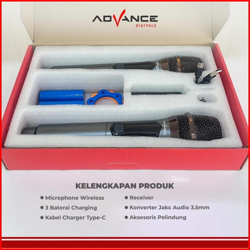 Advance Mic-207 I Mic-206 Microphone Karaoke Satu Paket 2 Mic Bisa Di Charge Mikrofon