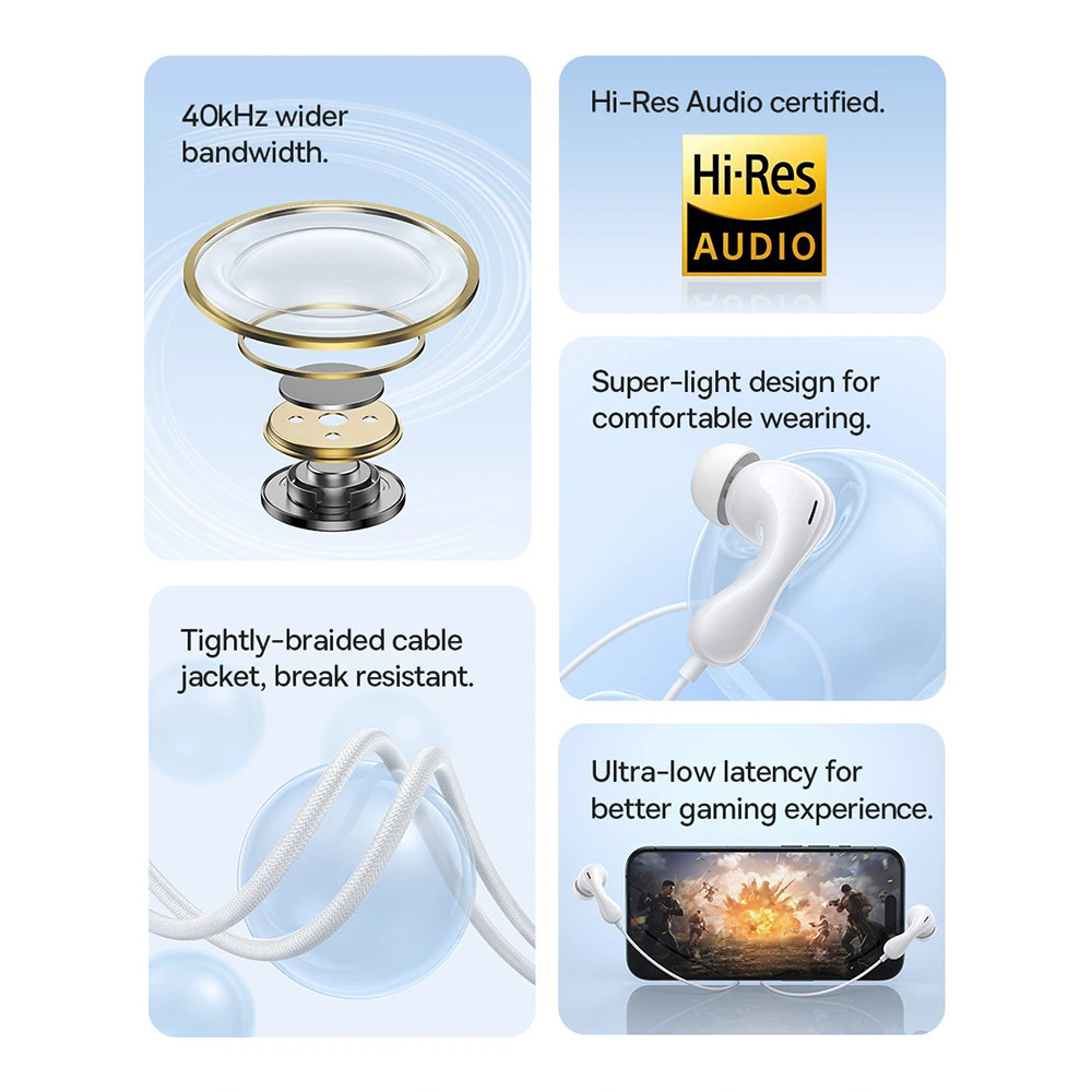 Baseus Headset Handsfree Encok Type c Wired Earphone CZ20 Mic