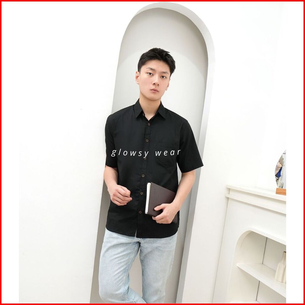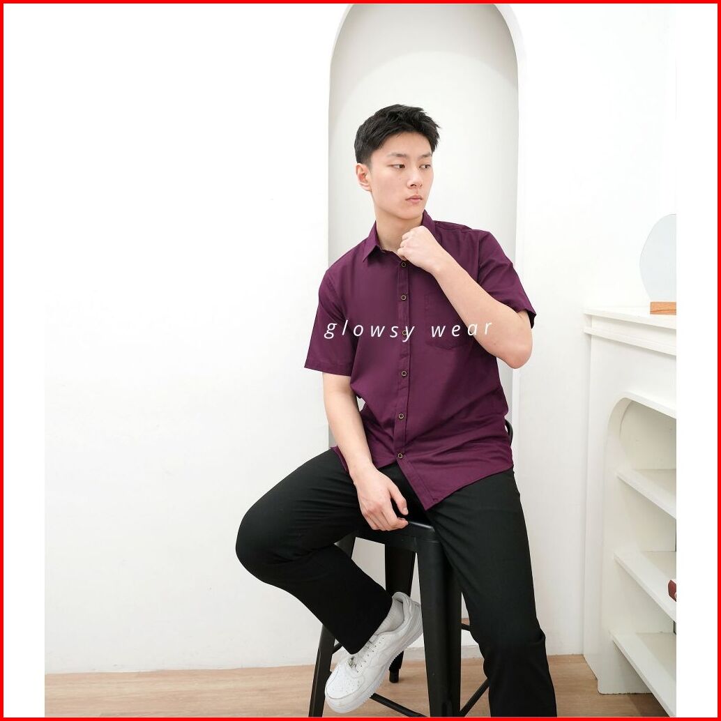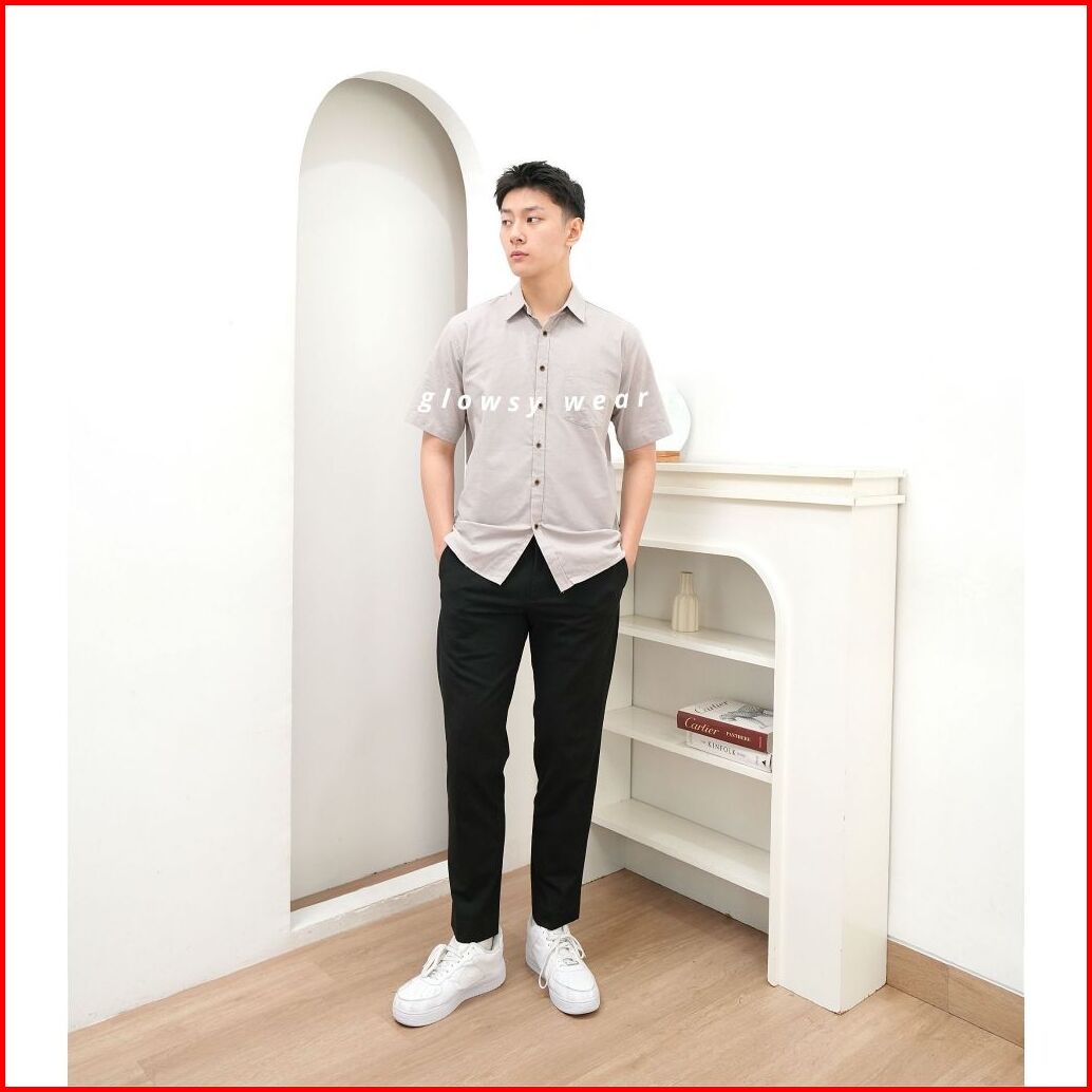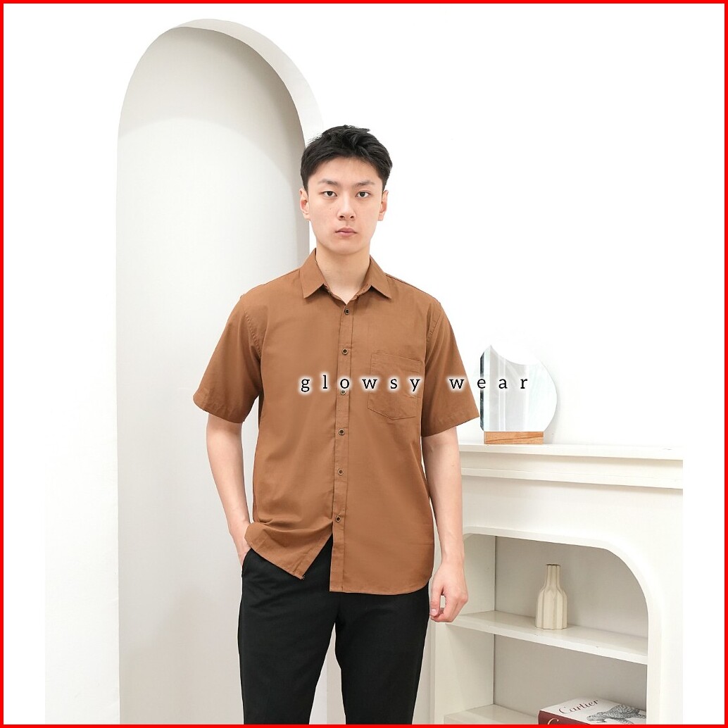 Kemeja Pria Polos Lengan Pendek Premium Bahan Katun Sigaret Kemeja Pria Polos Warna Navy Hitam Abu Muda Abu Tua Coklat