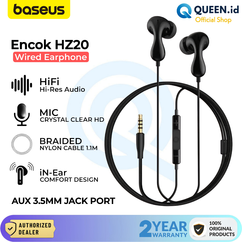 Baseus Encok HZ20 Wired Earphone Audio Jack 3 5mm Headset Kabel Braided With Mic