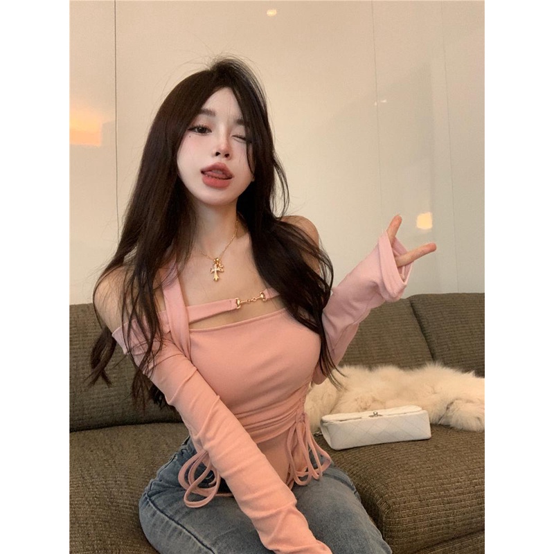 Cohan Ds011 Women's CropTop Slimbody Square Neck Long Sleeve Hitam Putih S/M/L