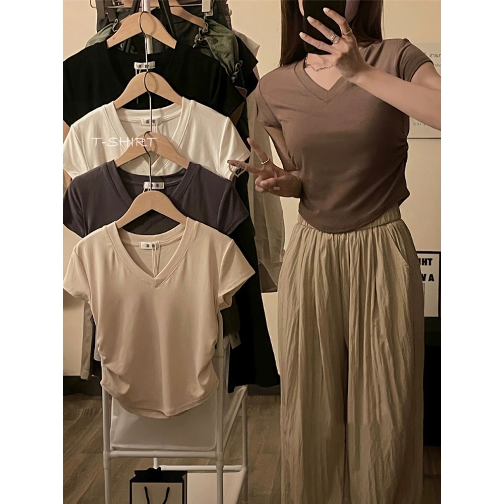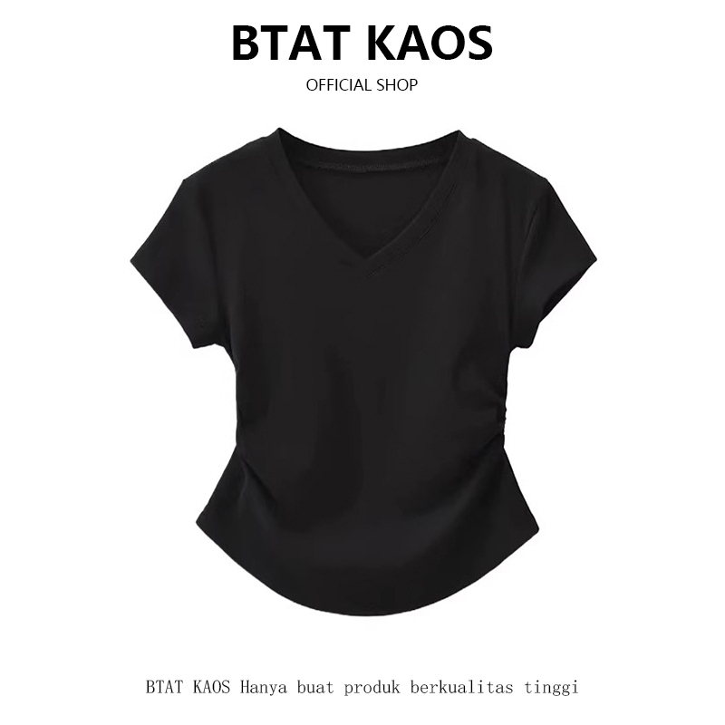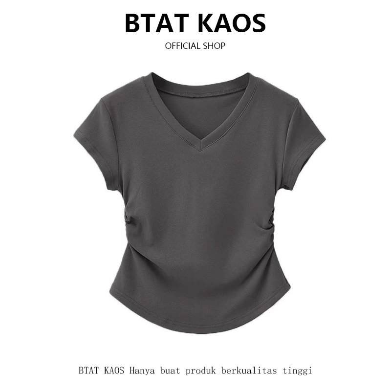 BTAT Atasan crop kerah V dasar warna polos/crop top s m l xl/kaos crop wanita korea