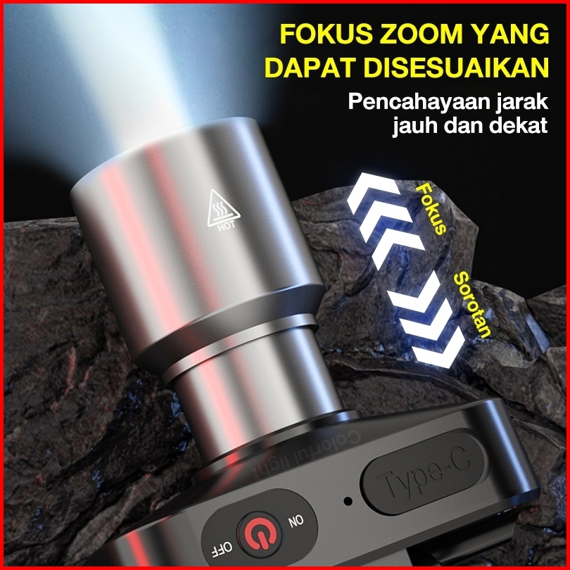Headlamp Led 500w Penerangan Terus Menerus Selama Senter Kepala 3 Mode Cahaya Maksimal