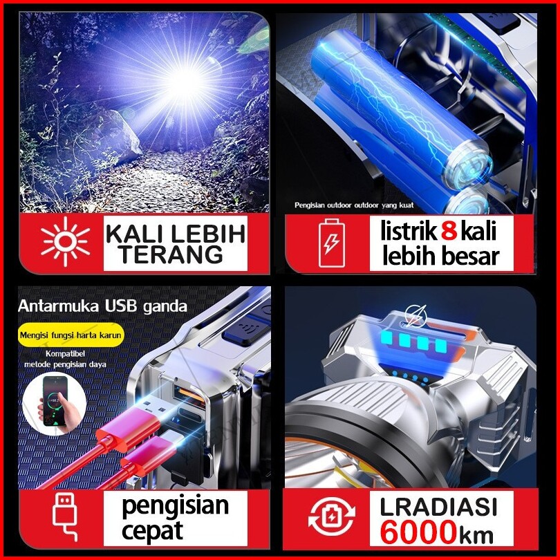 Ofeel Led Headlam Senter Light Super Terang Outdoor Waterproof Berdaya Tinggi Lampu Depan Camping