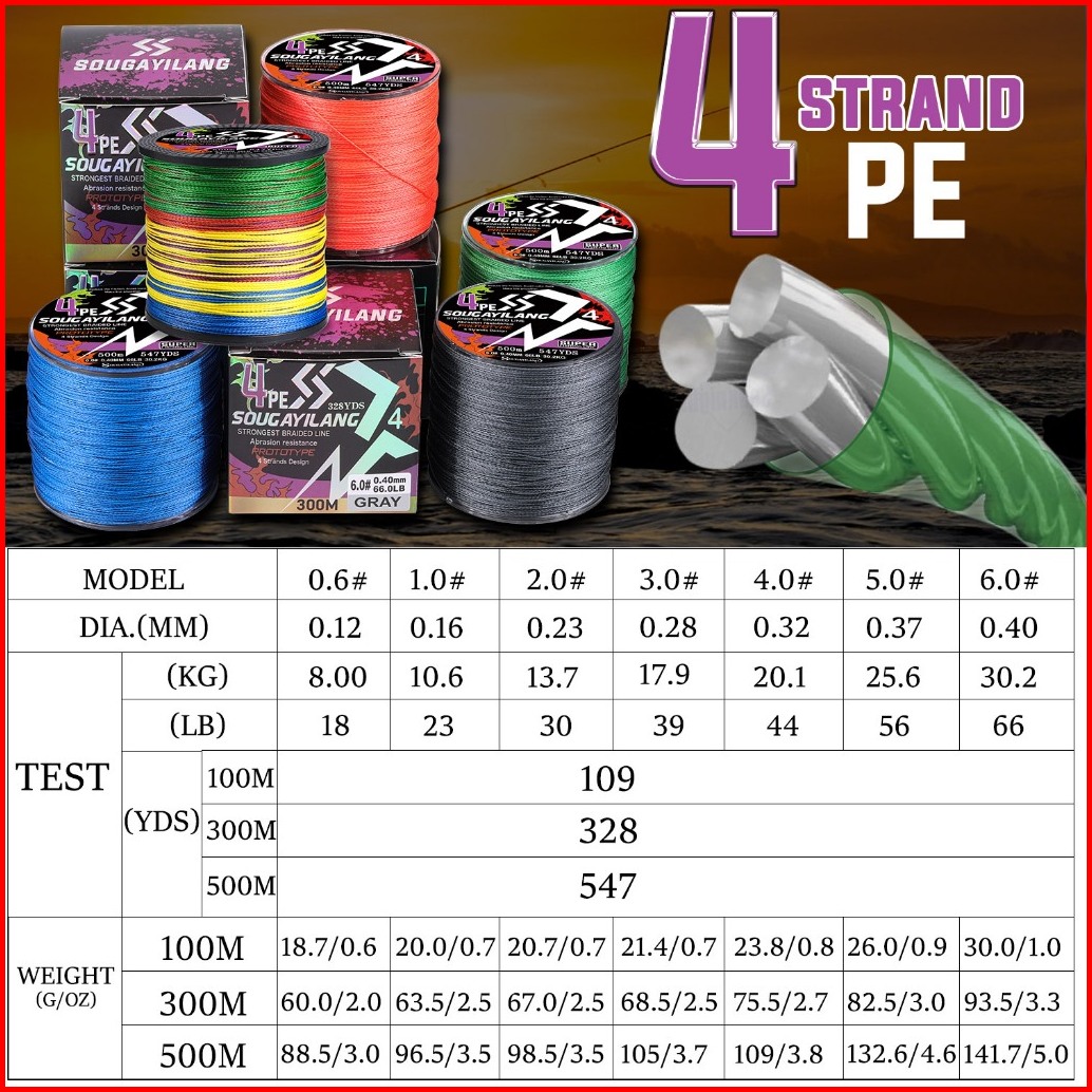Sogayilang 300m 500m Strongest Braided Line Super Strand 4 Pairs