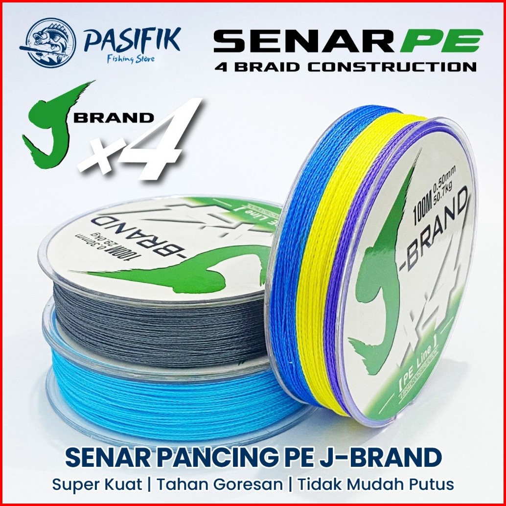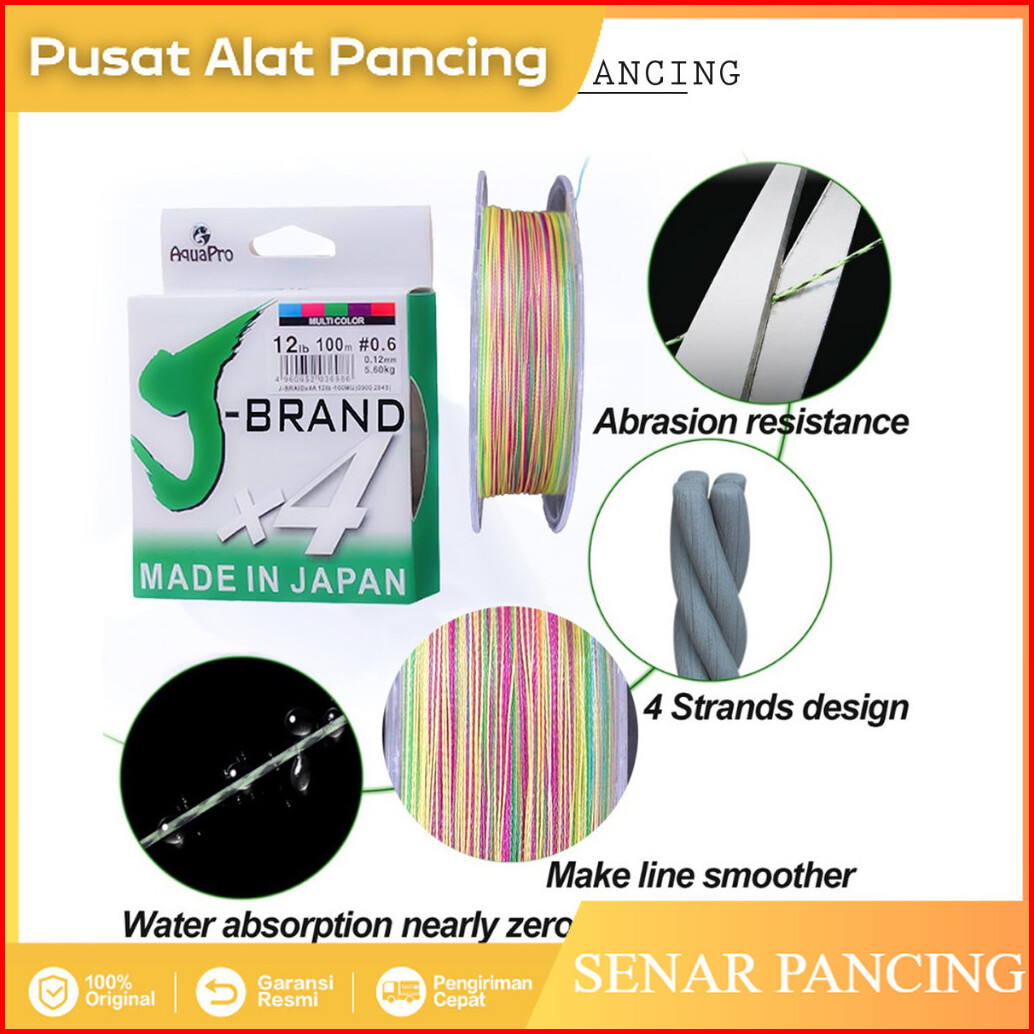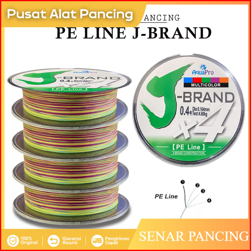 Senar Pancing J-brand X4 100m Pe Multicolor Senar Kepang 4 Helai Untai Senar Pancing Multifilamen Kawat Pancing Ikan