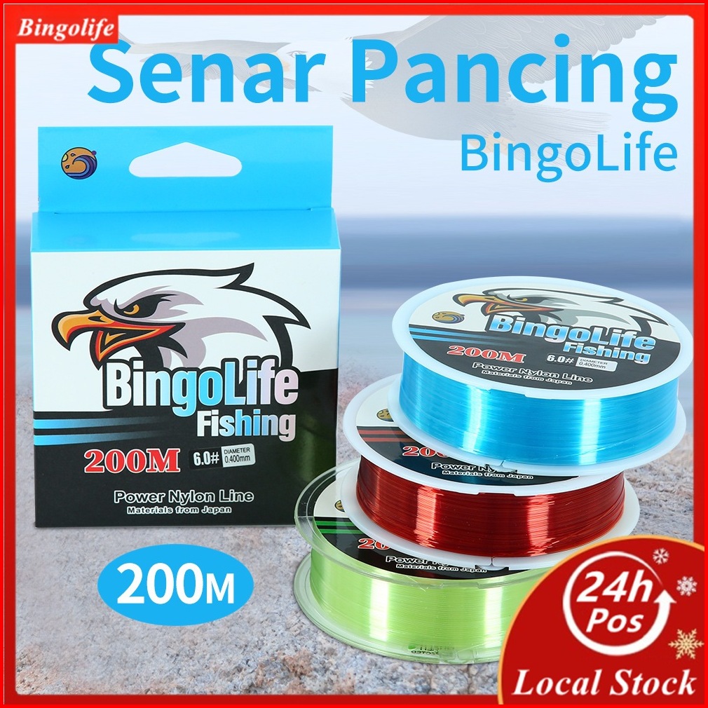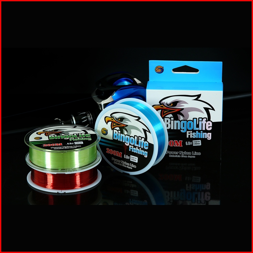 Bingolife Senar Pancing Nilon Jepang 200m Tahan Lama Biru Tenggelam Merah Anti Keriting Hijau Japanese Nylon Fishing Lin
