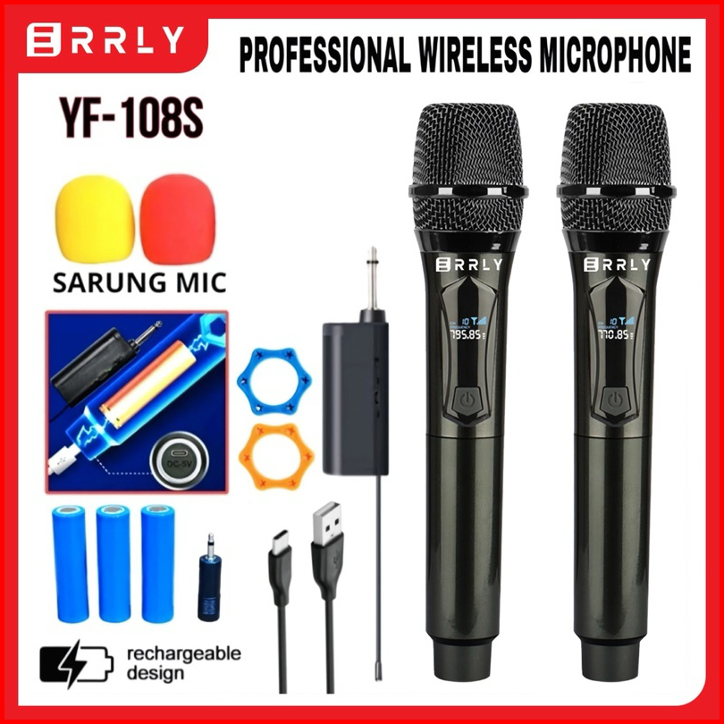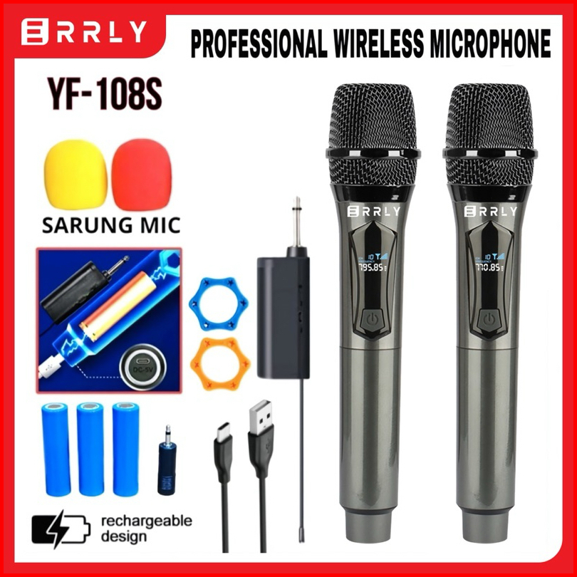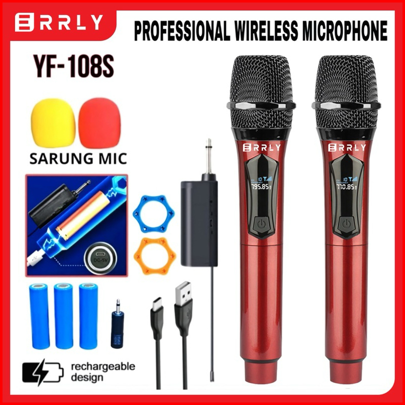 Mic Karaoke Profesional Wireless Errly Yf-108s Uhf Single And Double Free Sarung Mic Bisa Drosip Boss