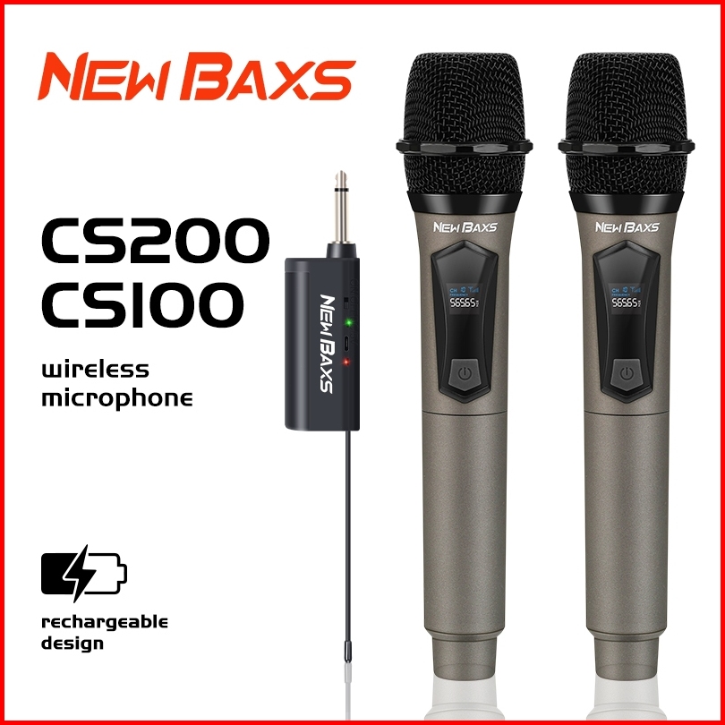 New Baxs Mic Wireless 2 Mic Murah Cs100 Cs200 Mikrofon Isi Ulang Mic Karaoke Tanpa Kabel Microphone Wireless Cocok Untuk