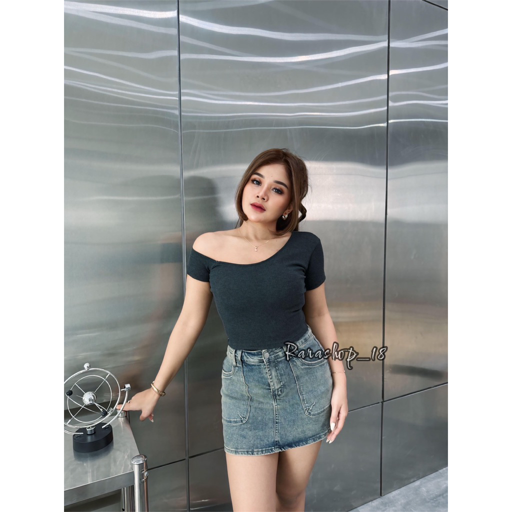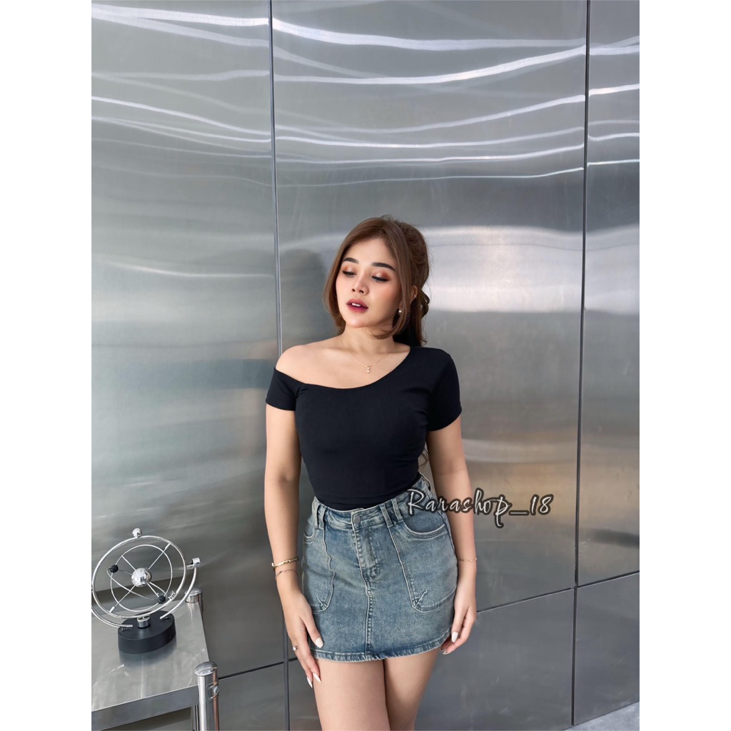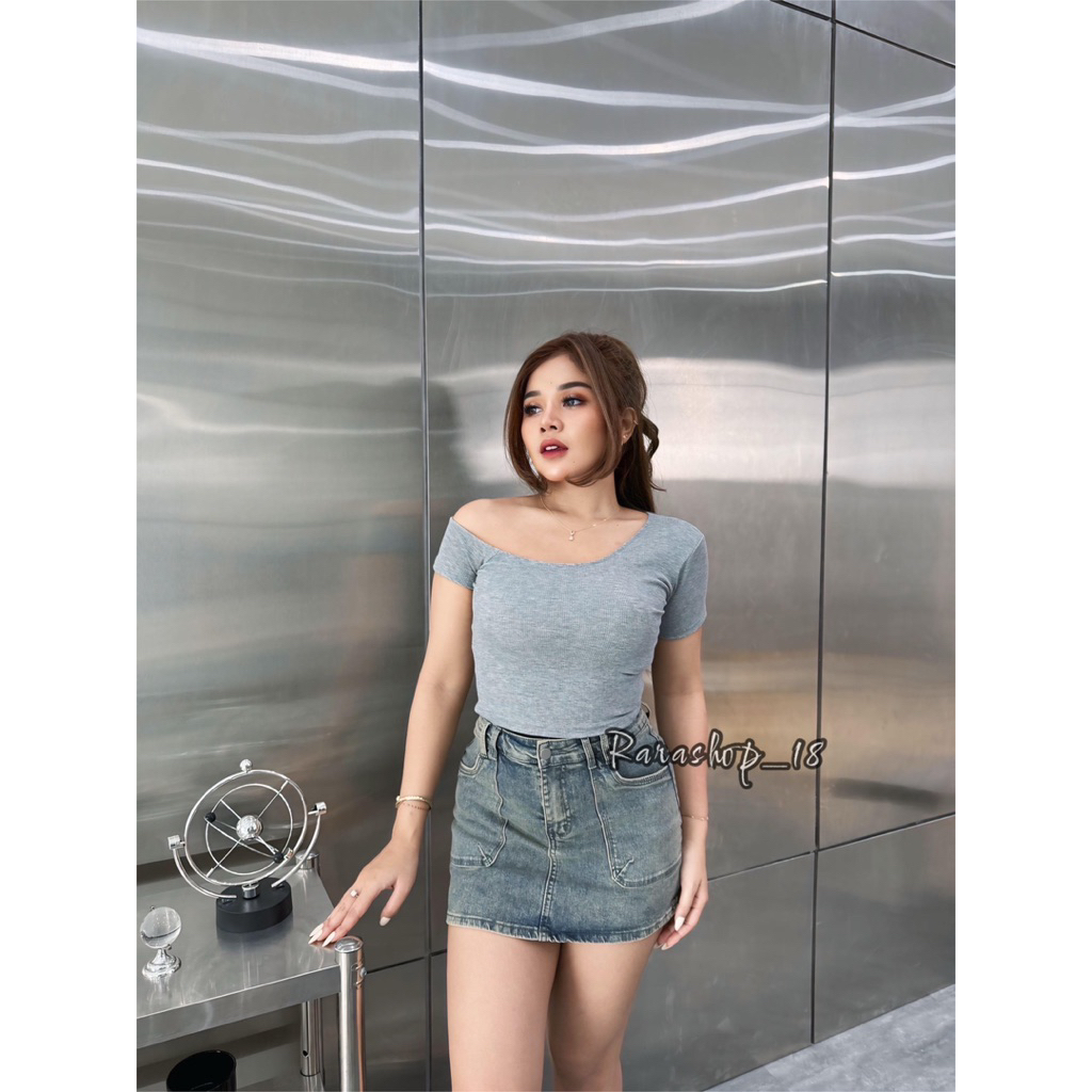 Revani Croptop Atasan Wanita Rib Panjang 40cm