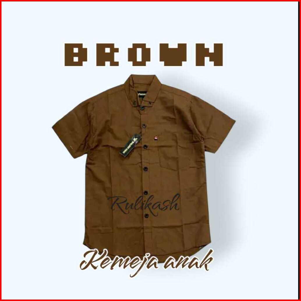 Kemeja Anak Laki Laki Brown Lengan Pendekterbaru Umur 1-13 Tahun Katun Polos Marun Denim Hitam