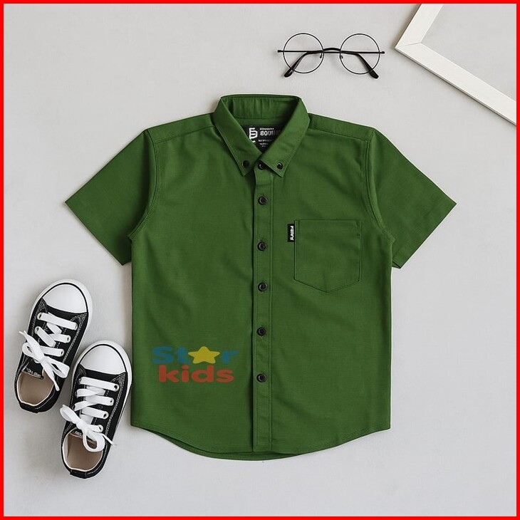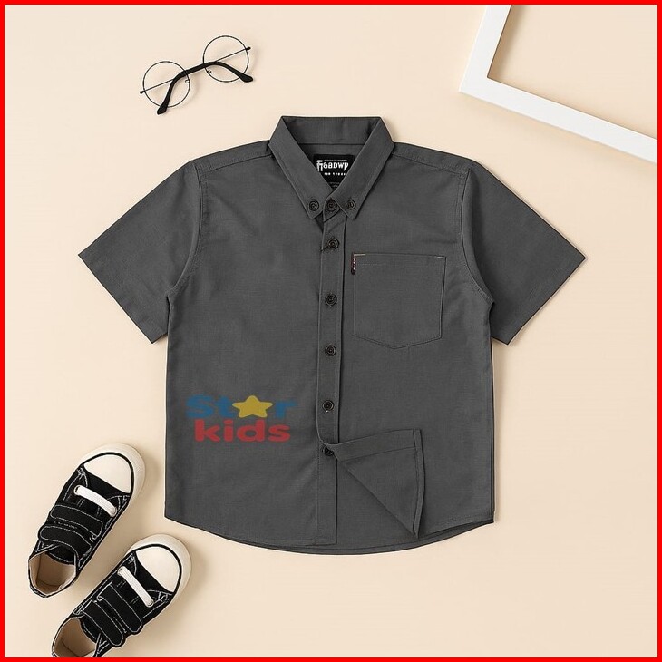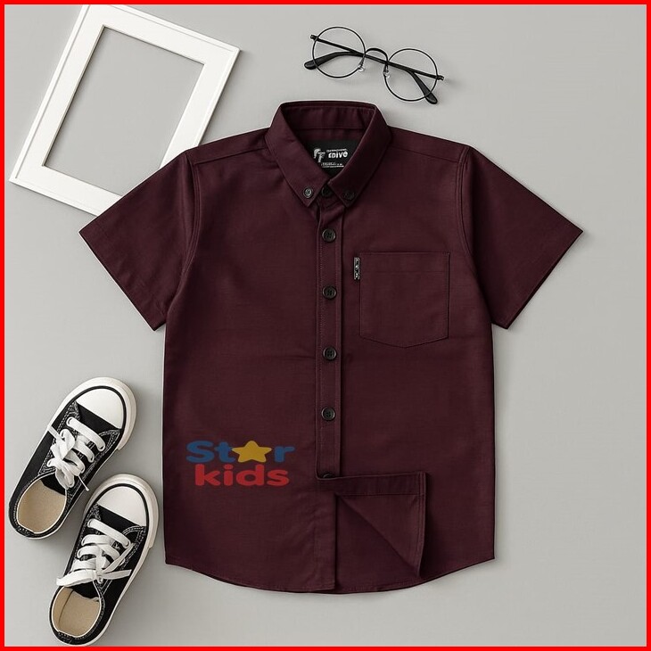Baju Kemeja Anak Laki-laki Lengan Pendek Warna Burgundy Usia 2 Tahun - 12 Tahun Bahan Katun Cigaret