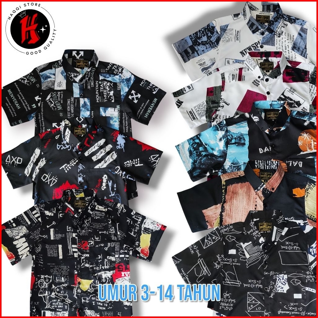 Kemeja Motif Lengan Pendek Anak Laki-laki Umur 3-14 Tahun Katun Hem Original