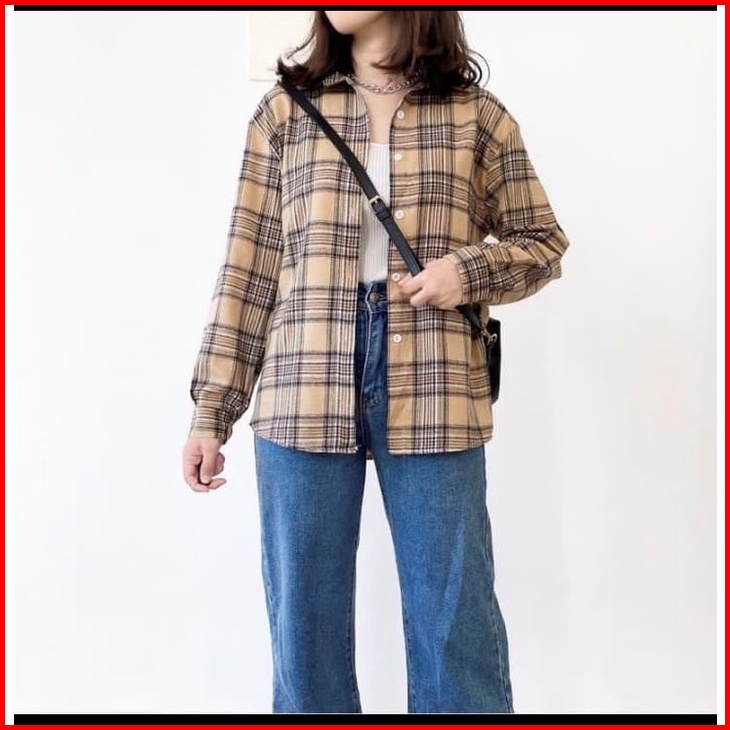 Kemeja Wanita Merlyn Katun Kotak-kotak Korean