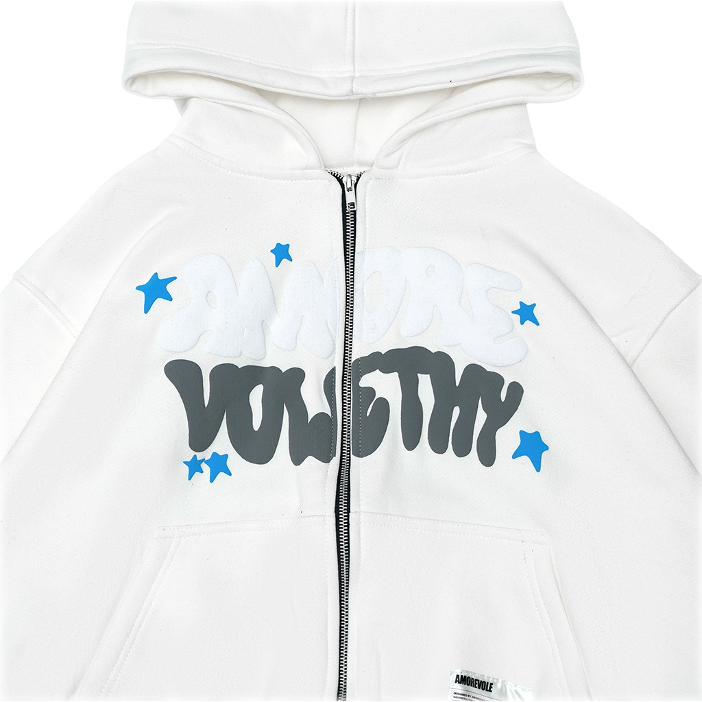 Amorevole - Zip Hoodie Stars Foam White Cotton Fleece