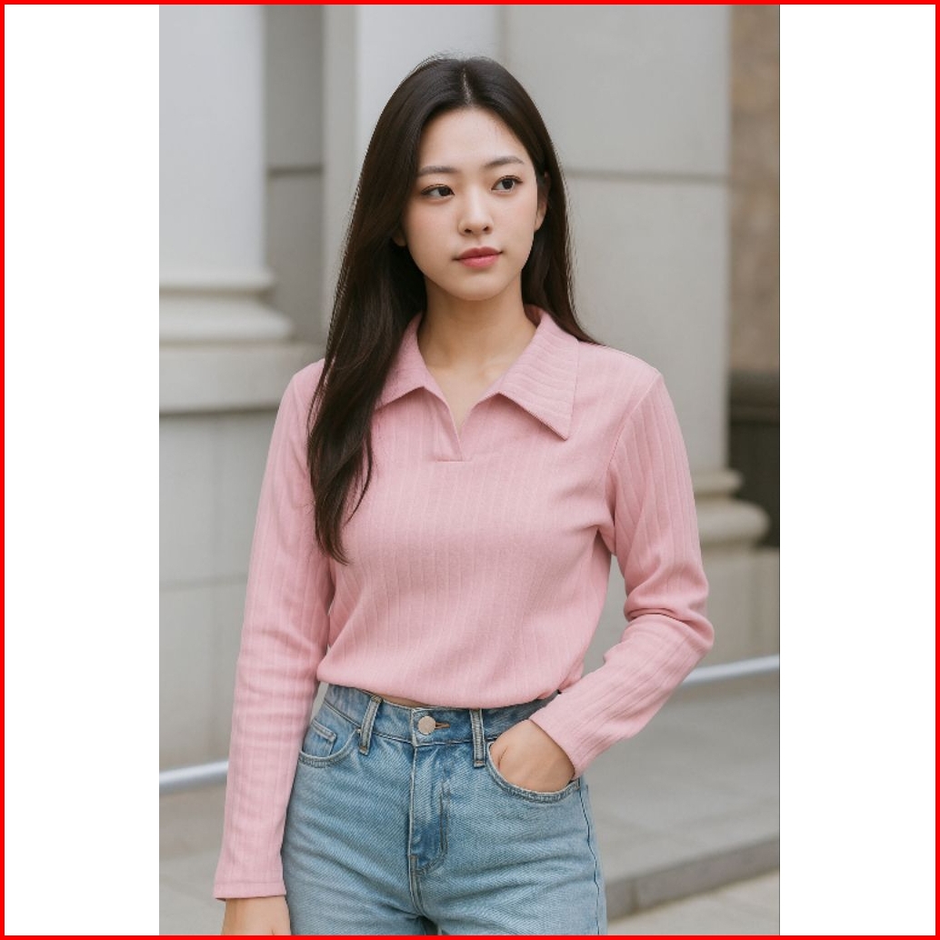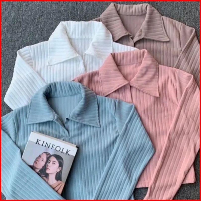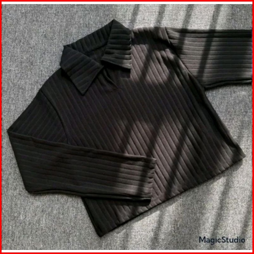 Baju Atasan Knit Hornets Kaos Crop Top Polo Lengan Panjang Wanita Terbaru Atasan Knit Hornets Top Polo Wanita Masakini