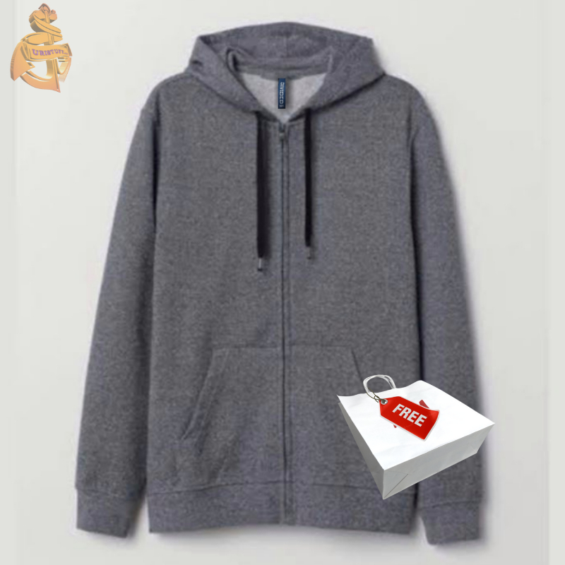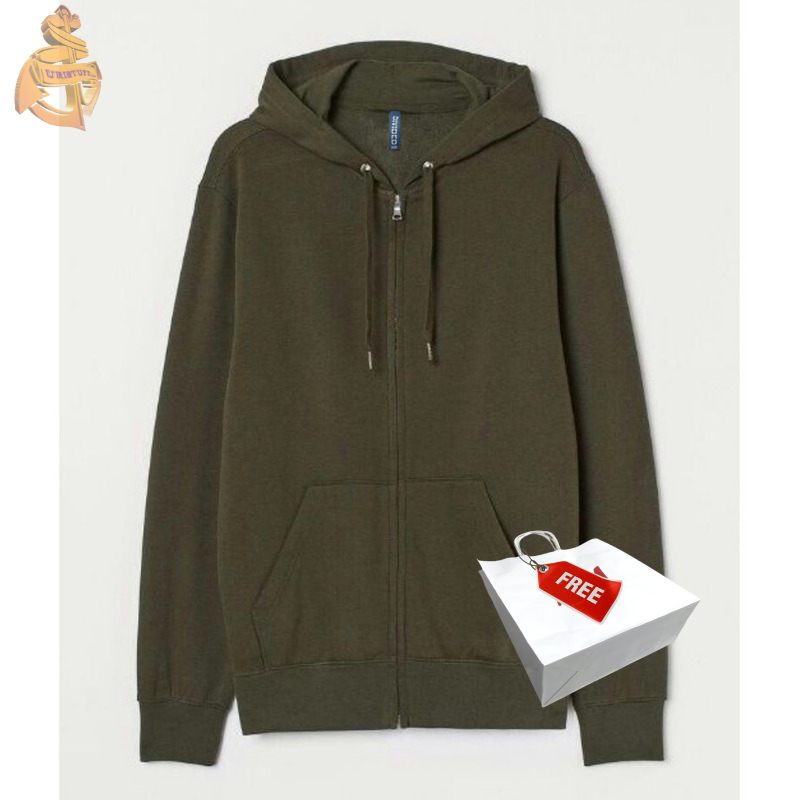 Hoodie Zipper Polos Basic HM Hitam Army Maroon Grey Navy Brown Hnm Jaket Pria Wanita Free Paper Bag