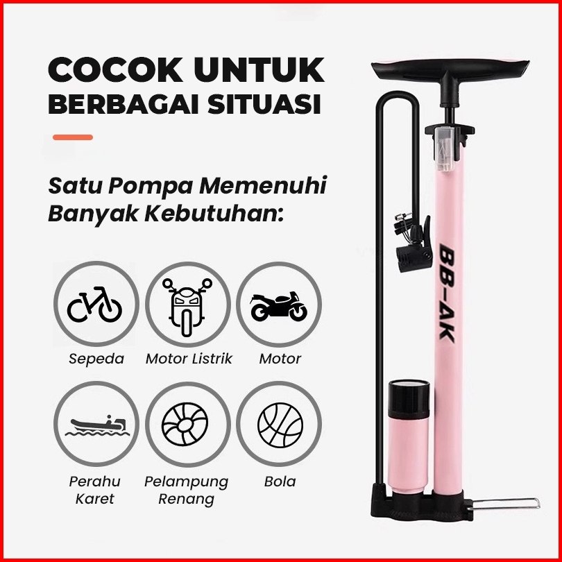 Pompa Angin Sepeda Motor Mobil Motor Listrik Bola Tahan Karat Tekanan Tinggi Mudah Digunakan Multifungsi Gratis Pentil