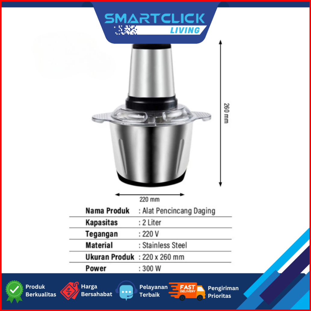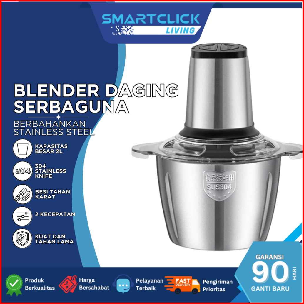 Blender Daging Serbaguna Stainless Steel Sus304 Chopper 2l Tahan Karat