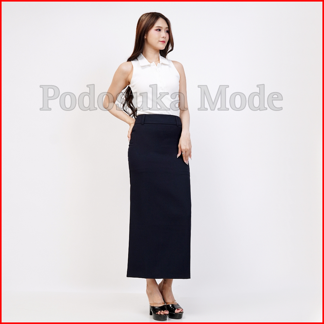 Podosuka Mode - Rok Kerja Kantor Hitam Panjang Span Rempel Belakang
