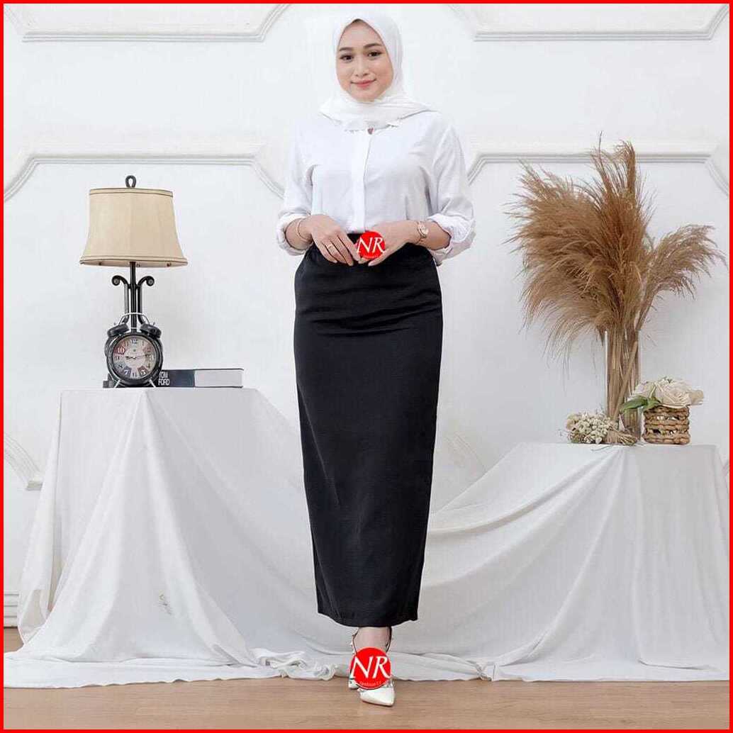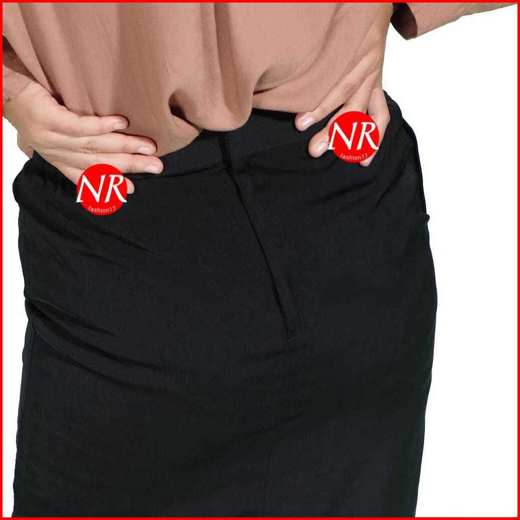 Rok Span Rempel Belakang Hitam Polos Panjang Bahan Tebal Lembut Premium Wanita Outfit Kerja