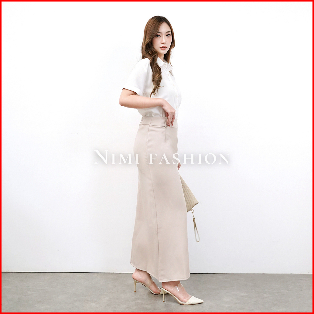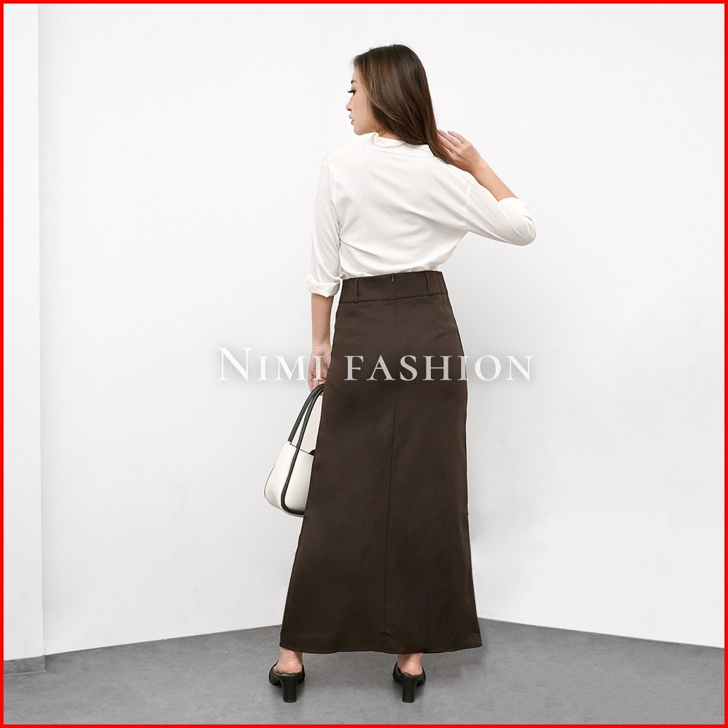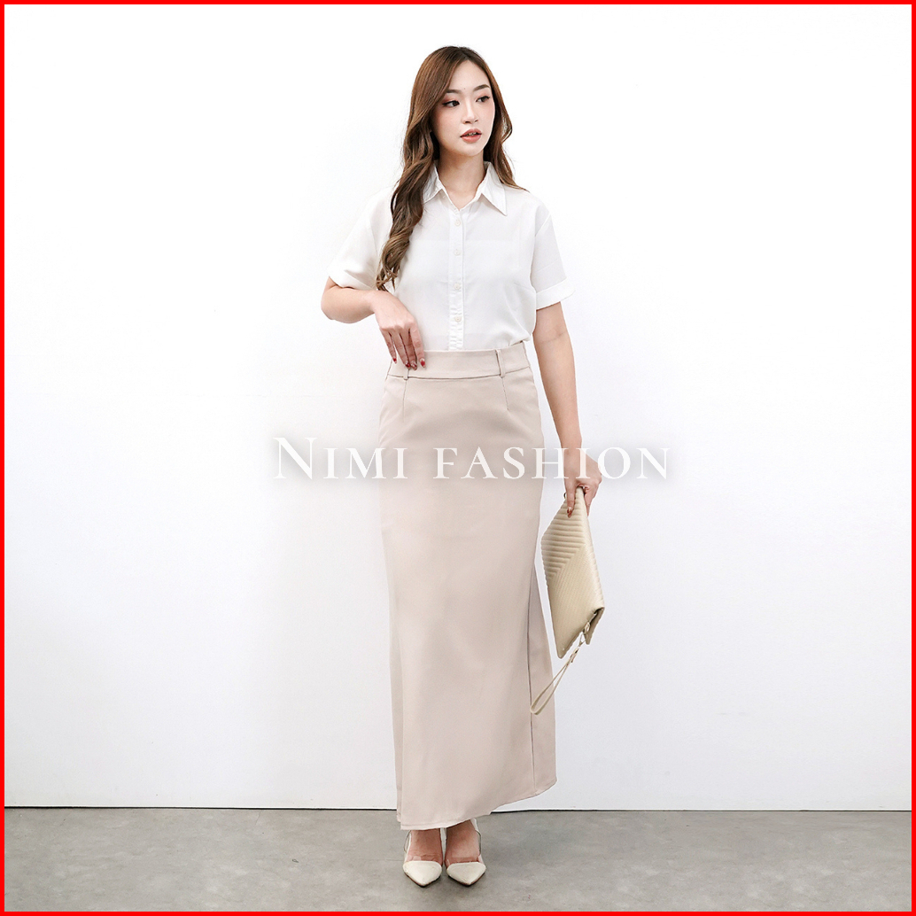Nimi - Rok Kerja Wanita Kantor Rok A Line Span Polos Panjang Wanita