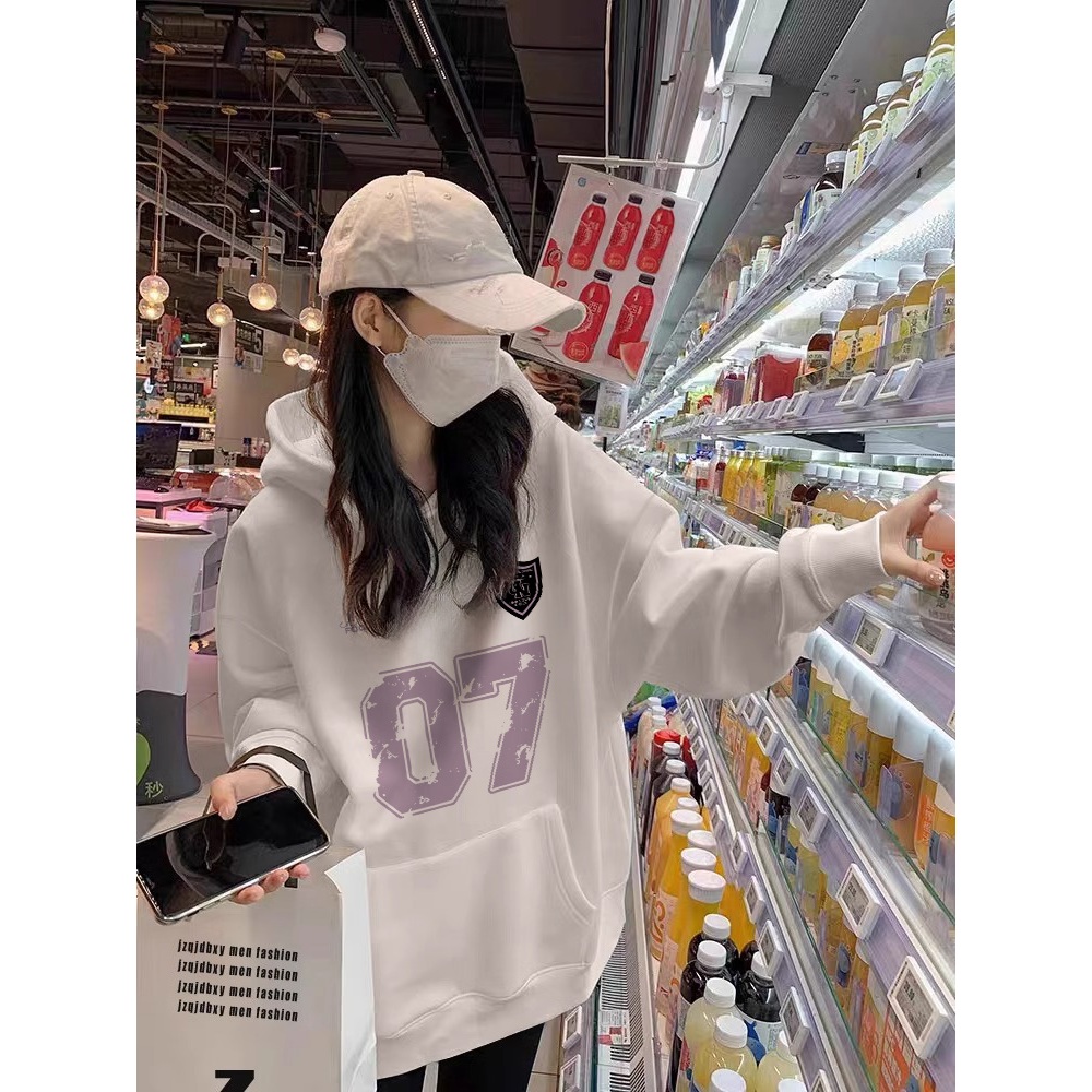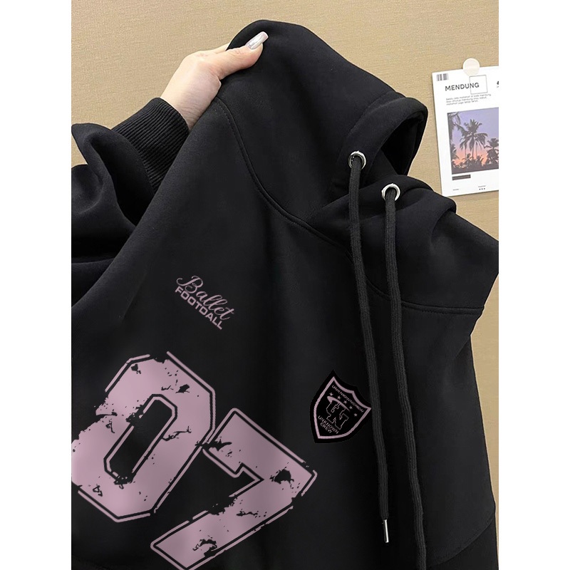 Forteid Hoodie Sweater Wanita Oversize angka huruf 07 Korean Style Baju Wanita Kekinian/Baju Wanita/Switer Wanita Hoodie