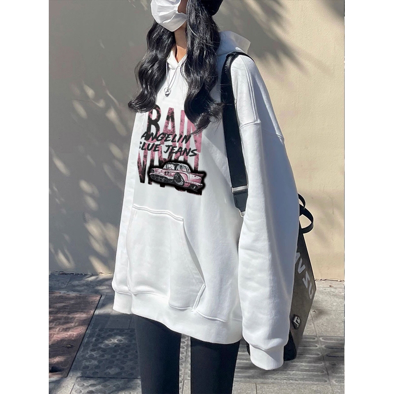Forteid Oversize Hoodie Wanita Korean Style Oversize Hoodie Sweater (Pencetakan Mobil Retro) Baju Wanita Kekinian/Baju W