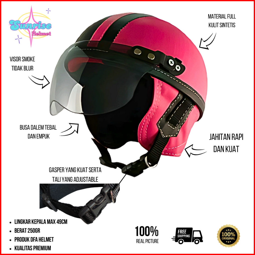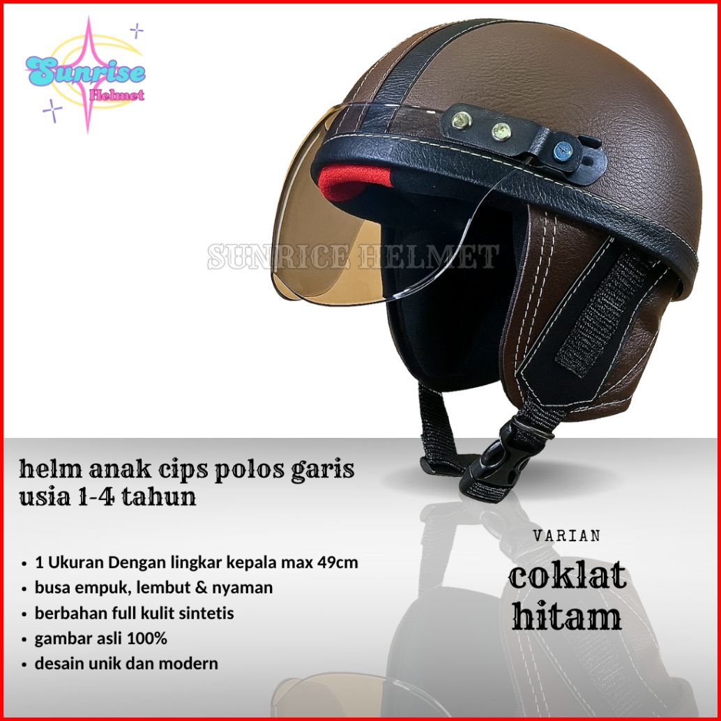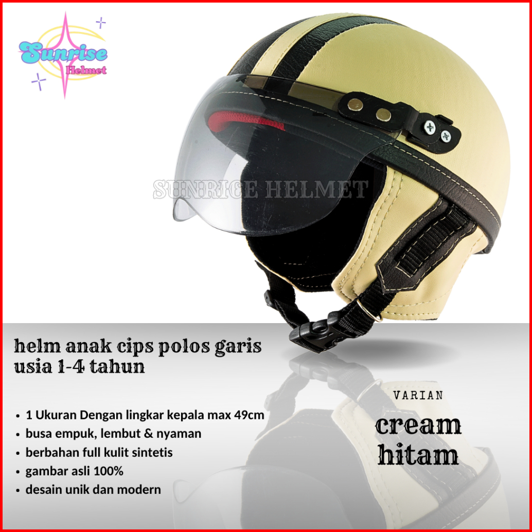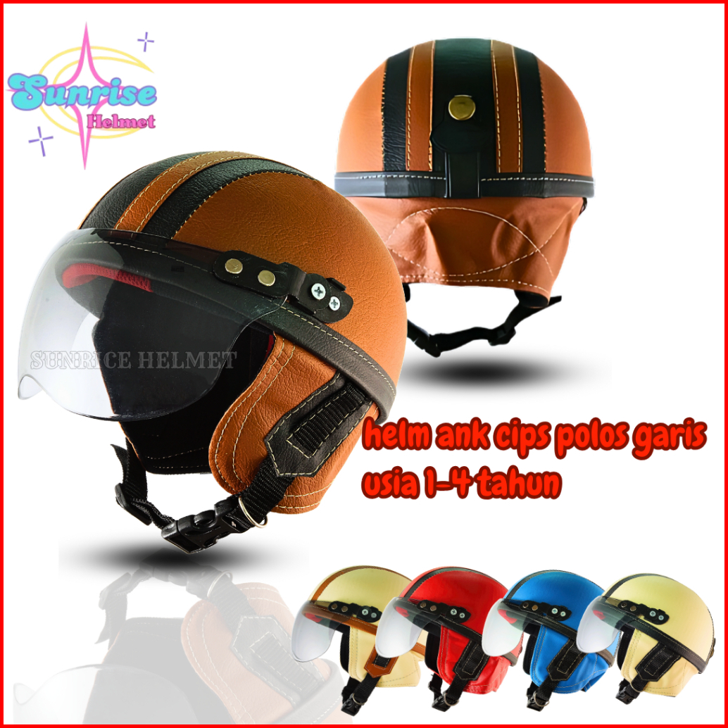 Helm Anak Motor Retro Laki Laki Perempuan Umur 1234 Tahun Real Pict Sinchan Garis