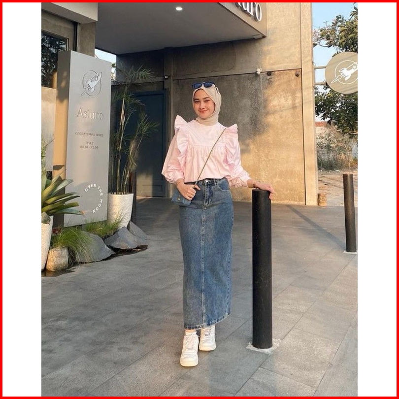 Rok Theana Jeans Span Panjang Karet Belakang Wanita Skirt Murah Terbaru Rok Jeans Denim - Indonesia