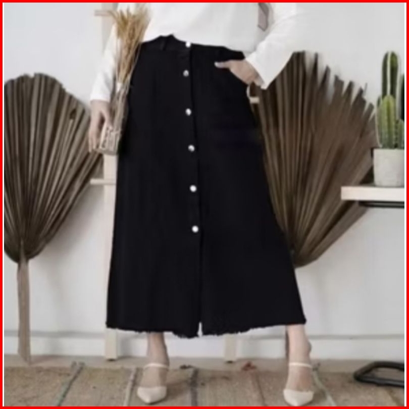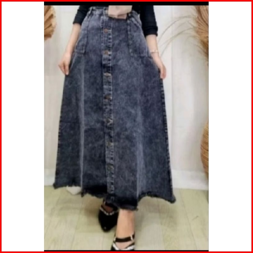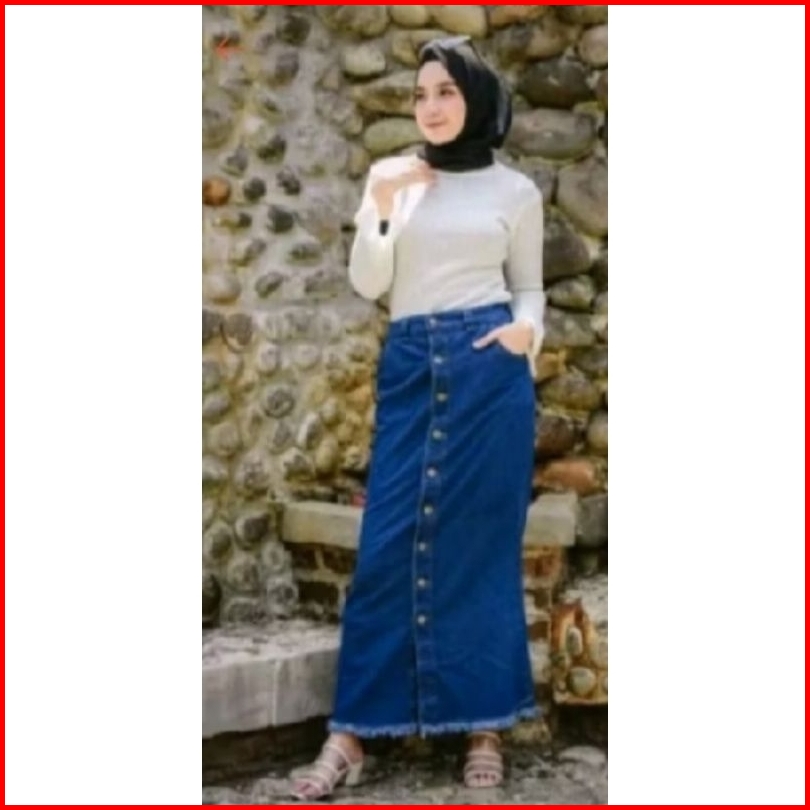 Rok Rawis Jeans Ledy Rok Button Rok Jeans Panjang Kancing Depan Button Up