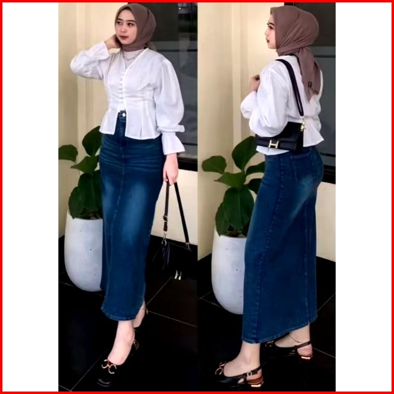 Cessa Rok Span Jeans Skirt Jeans Belah Wanita
