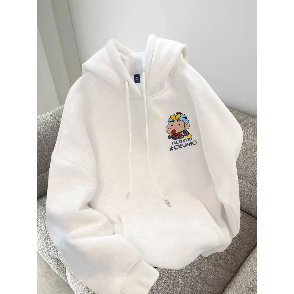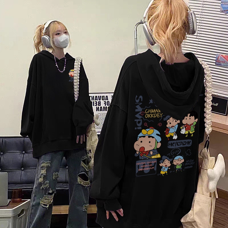 Forteid Oversize Hoodie Wanita Korean Style Oversize Hoodie Sweater (Cetakan Crayon Shin-chan yang lucu) Baju Wanita Kek
