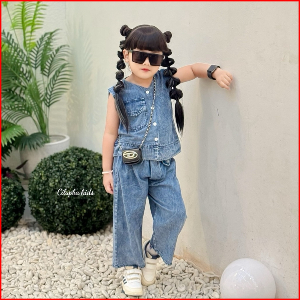 Cilupba Kids - Setelan Jeans Baju Anak Perempuan Usia 1-6 Tahun - Setelan Vest Celana Kulot Anak Perempuan