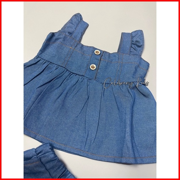 Setelan Denim Anak Bahu Ruffle - Setelan Anak Perempuan - Pakaian Anak Perempuan