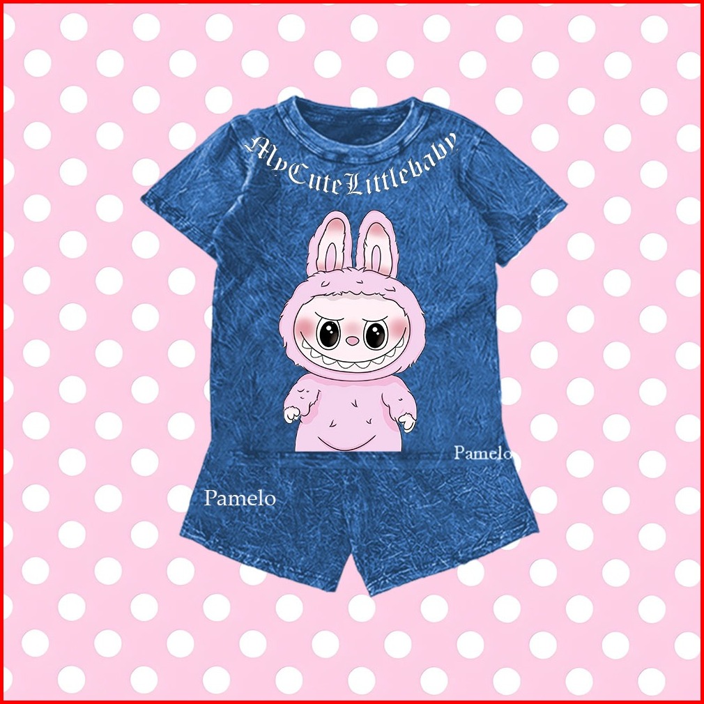 New Pamelo Stelan Denim Wash Anak Labubu Denim One Set Anak Stone Wash Denim Polos Anak Set Distro Basic Anak Pri
