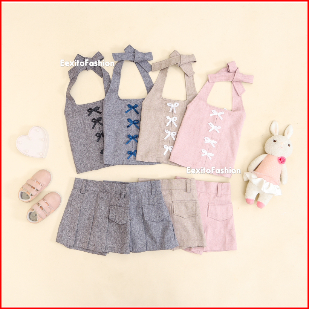Eexitofashion Set Ryuta Bow Skort Setelan Celana Rok Anak Perempuan Outfit Anak Cewek Fashion Anak