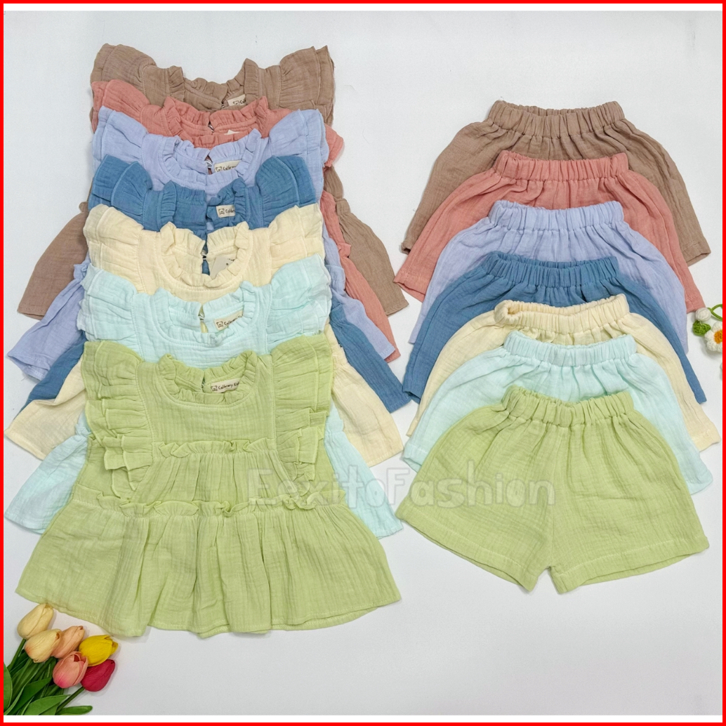 Eexitofashion Anna Ruffle Set 1 - 5 Tahun Setelan Anak Perempuan Double Gauze Outfit Anak Cewek Katun Muslim Fashion Ana