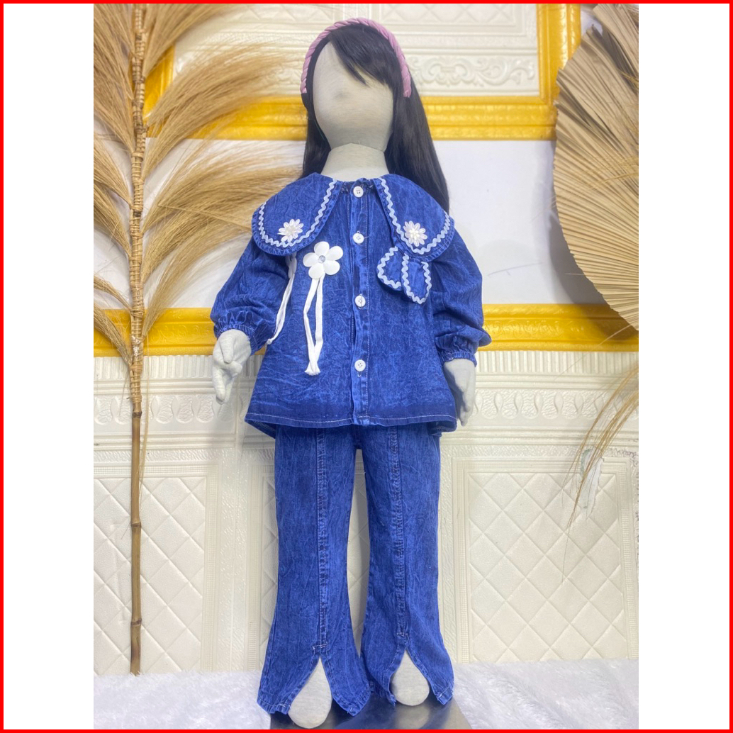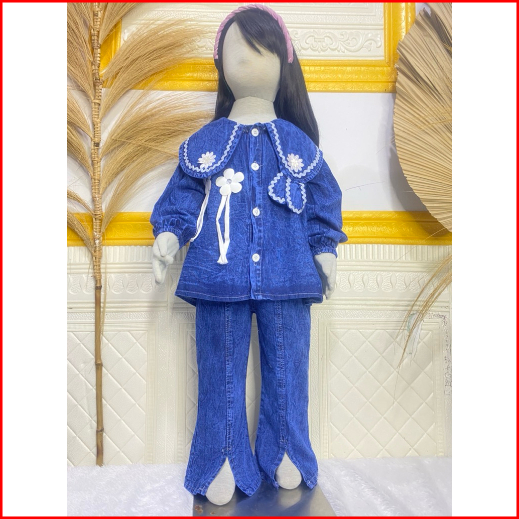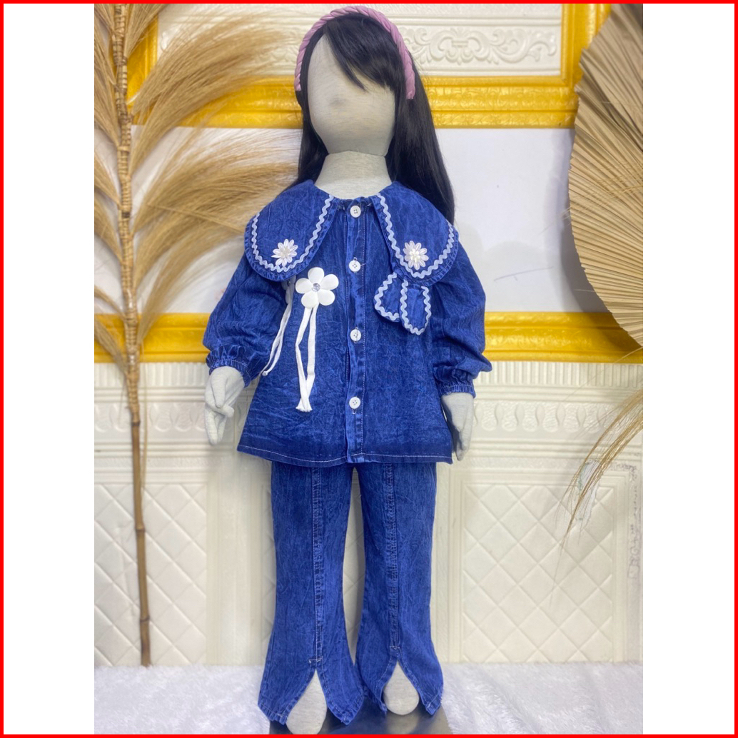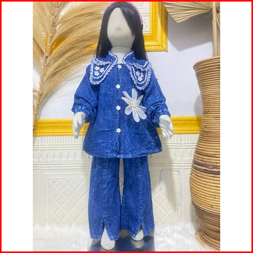 Setelan Full Jeans Lengan Panjang Celana Jeans Cutbray Anak Perempuan Usai 3 Tahun - 12 Tahun Set Jeans Cutbray Anak Per