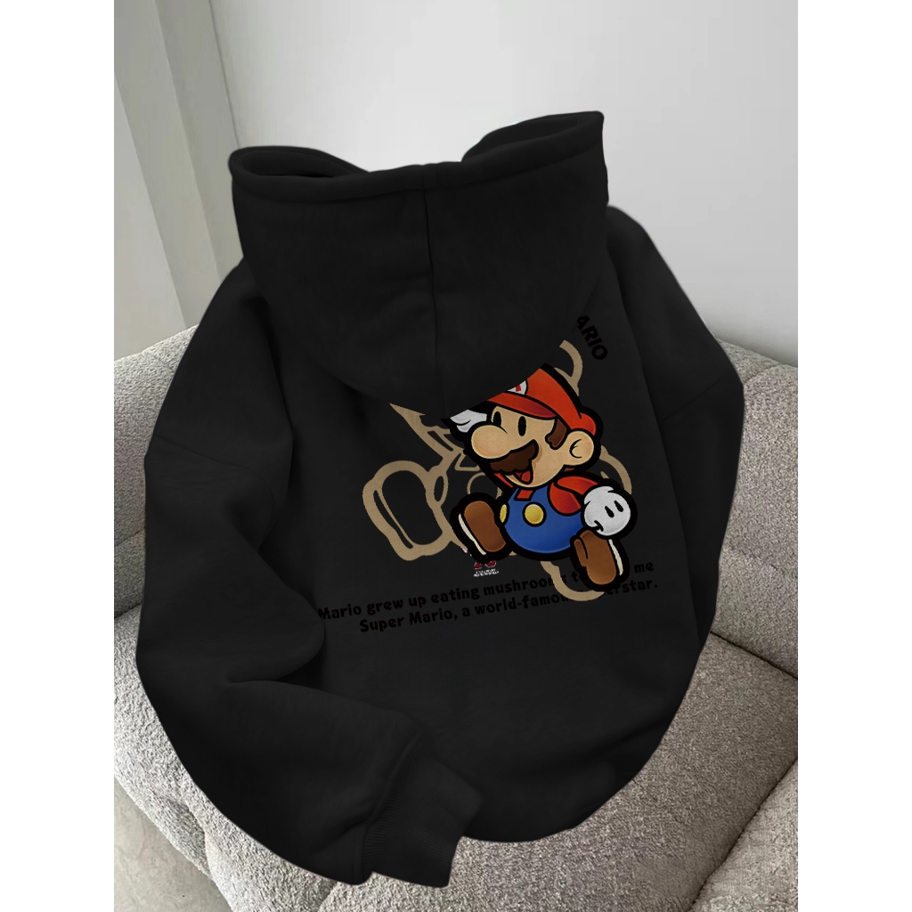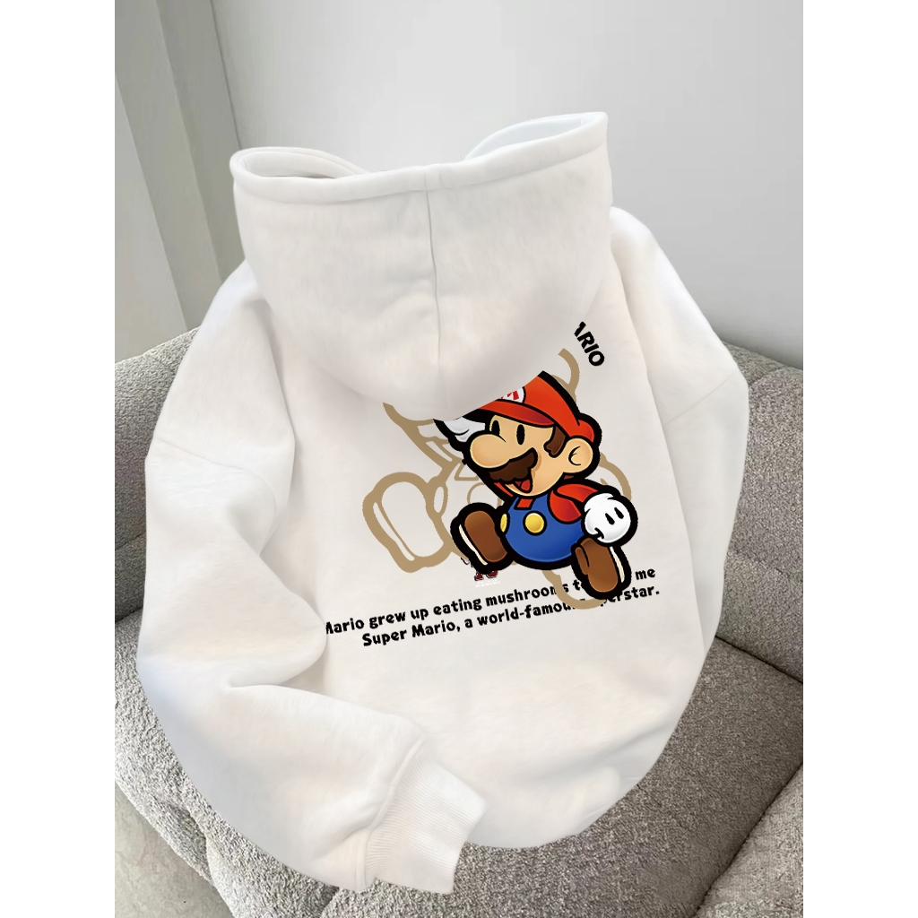 Forteid Oversize Hoodie Wanita Korean Style Oversize Hoodie Sweater (cetakan super mario) Baju Wanita Kekinian/Baju Wani