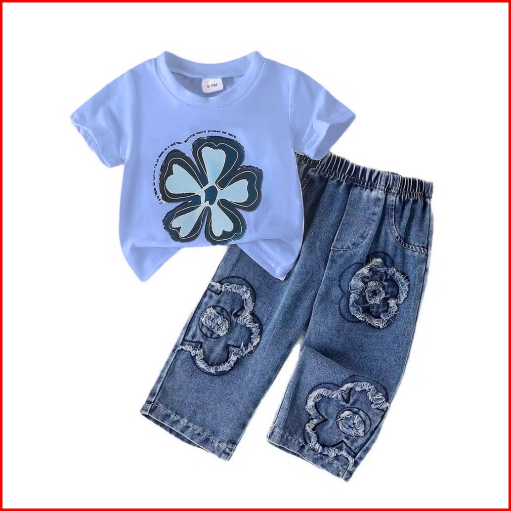Setelan Jeans Anak Perempuan Usia 1-5 Tahun Motif Bunga
