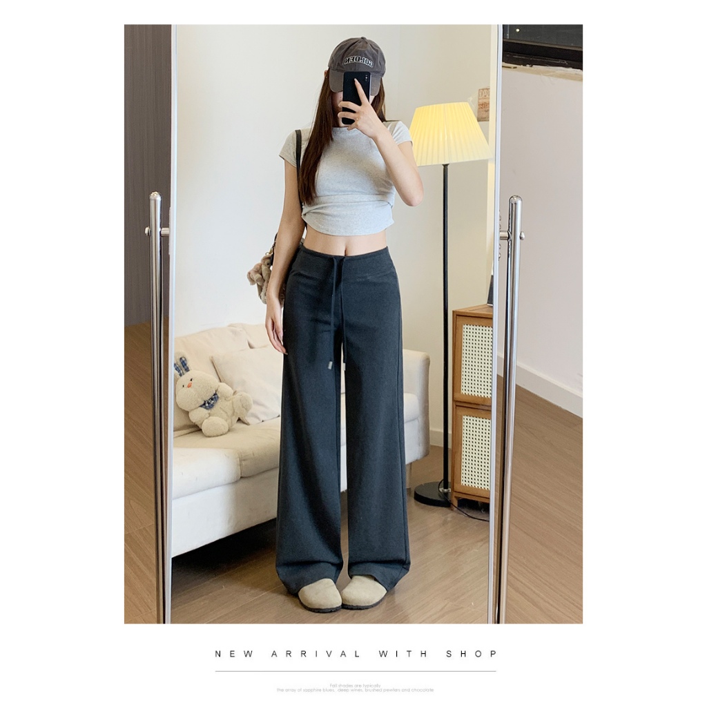 2toyoung Celana Panjang Wanita W25 Grey Lurus Sporty High Waist Nyaman untuk Musim Semi & Gugur