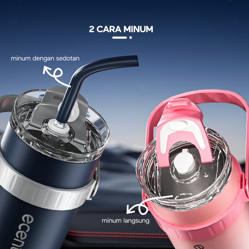 [Star] 【tumbler 1200ml】ecentio Tumbler Stainless Steel 304 Tahan Dingin Botol Minum 1200ml Dengan Straw Portable Car Drinking Cup Bpa Free -Biru/Gradien