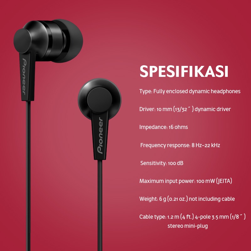 Pioneer Headset Wired In Ear Earphone SE C3T Corded Earbuds With Mic
