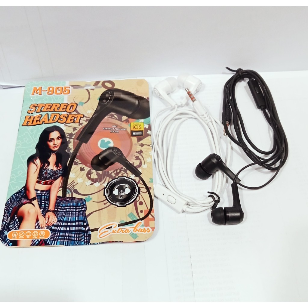 Handsfree + Mic M 905 Headset Stereo Sound Earphone Extra Bass Kabel Jack 3 5mm Universal