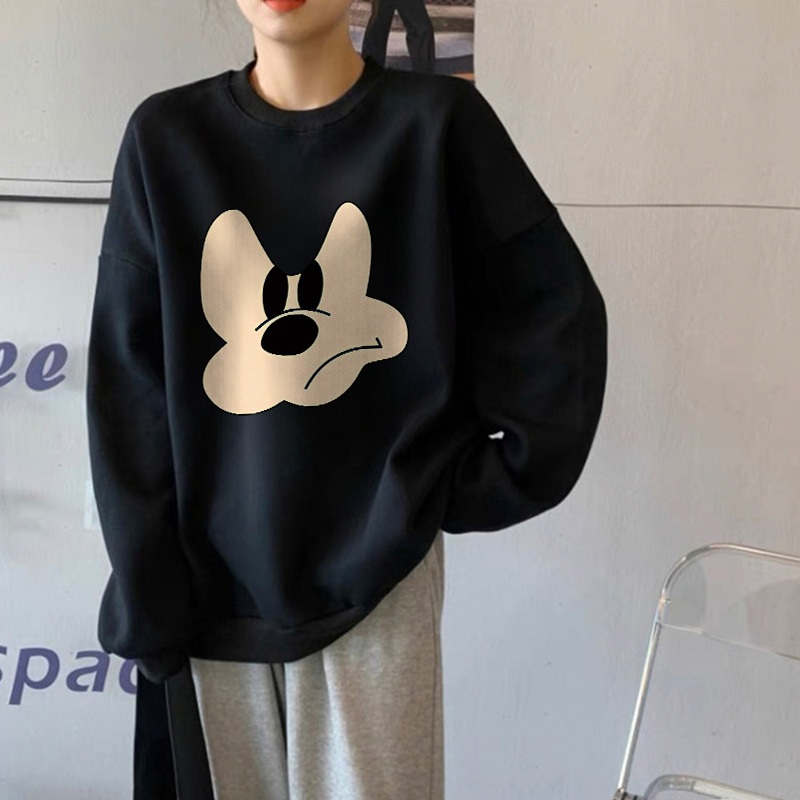 Forteid Sweater Lengan Panjang Oversized Street Style Korean Style/Switer Wanita Oversize Kaos Cetakan ekspresi lucu Kor