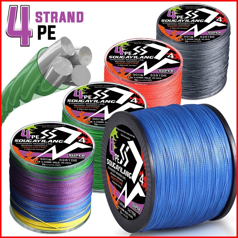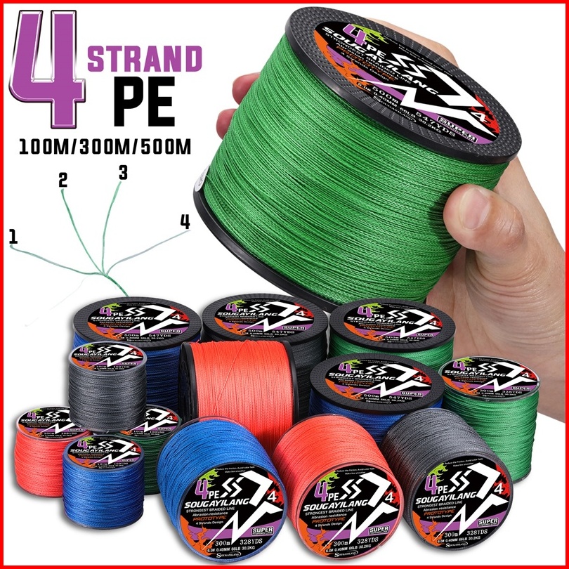 Senar Pancing Pe 4 Untai 300m 500m Senar Pancing Kepang Maks 18-66lb Joran Pancing Alat Pancing