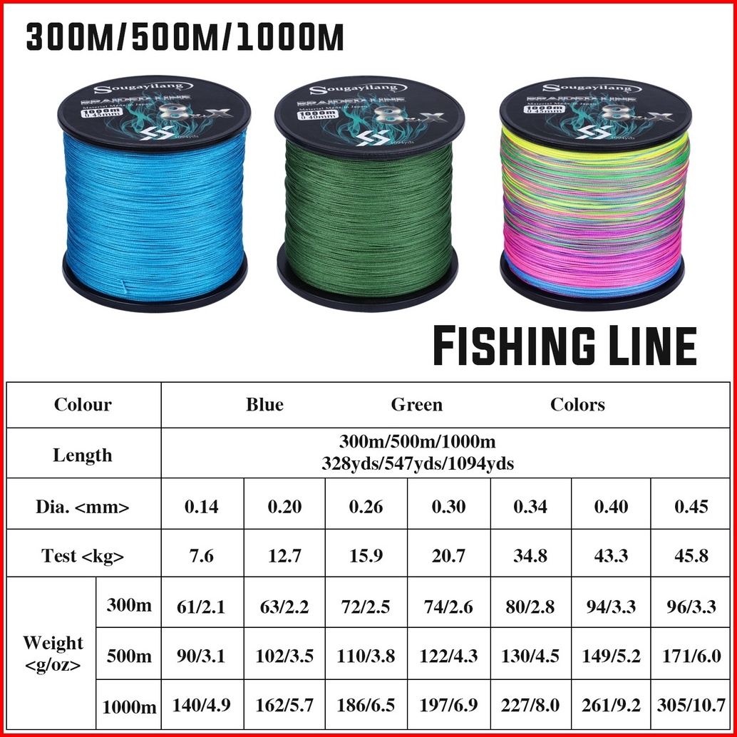 Sougayilang 300m 1000m 8x Strands Braided Line Multifilament Pe Line Braided Fishing Line 7.6kg-45.8kg Super Fishing Lin