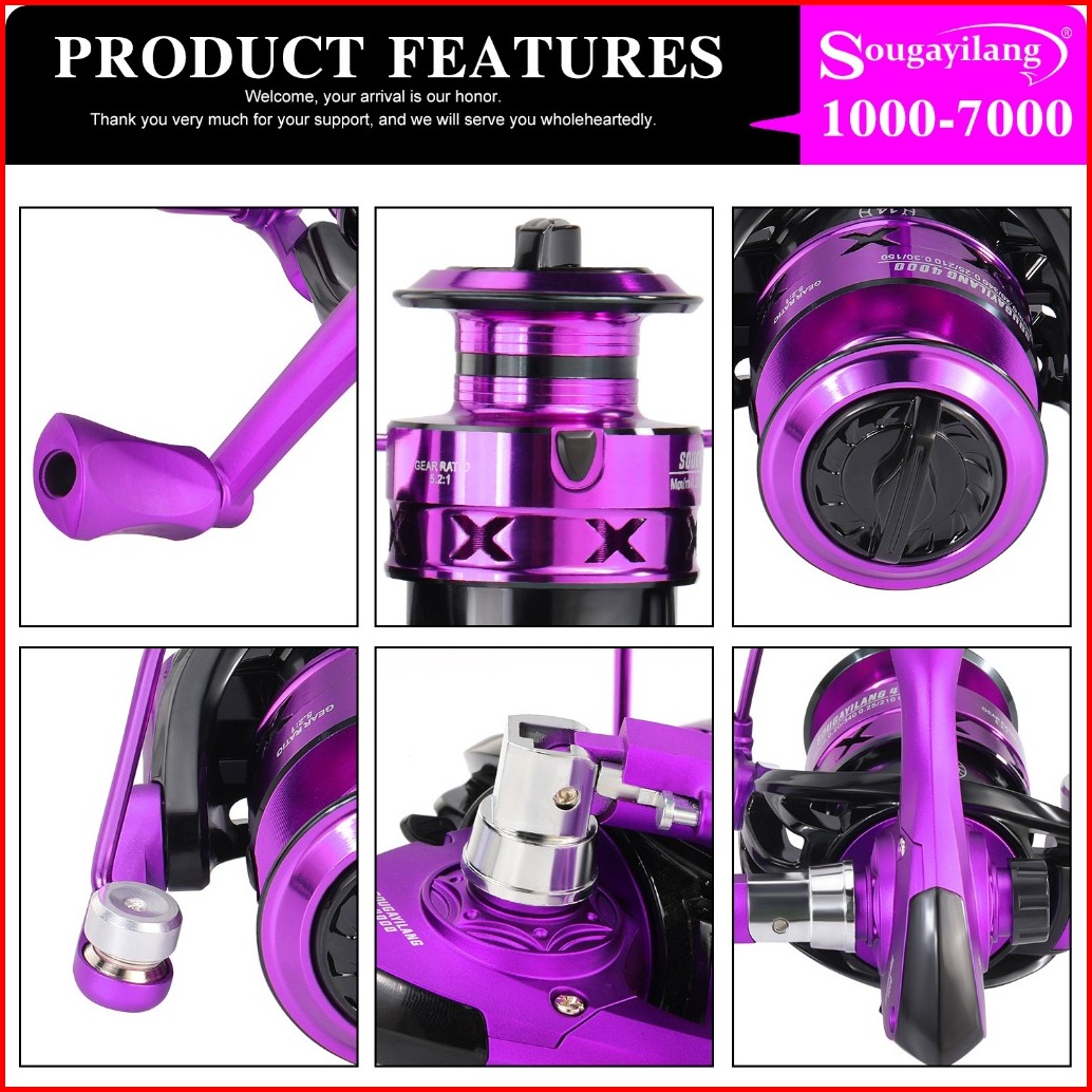 Sougayilang Spinning Pancing Reel 1000-7000 Size 5.2 1gear Ratio Bodi Seluruhnya Terbuat Dari Logam Aluminum Spool Fishi