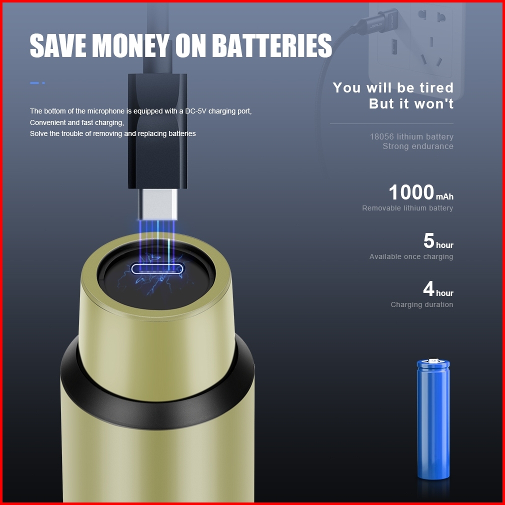 New Baxs Ub01 Ub02 Wireless Microphone Karaoke Version Professional Handheld Rechargeable Interface Tipe-c Dynamic 30-50